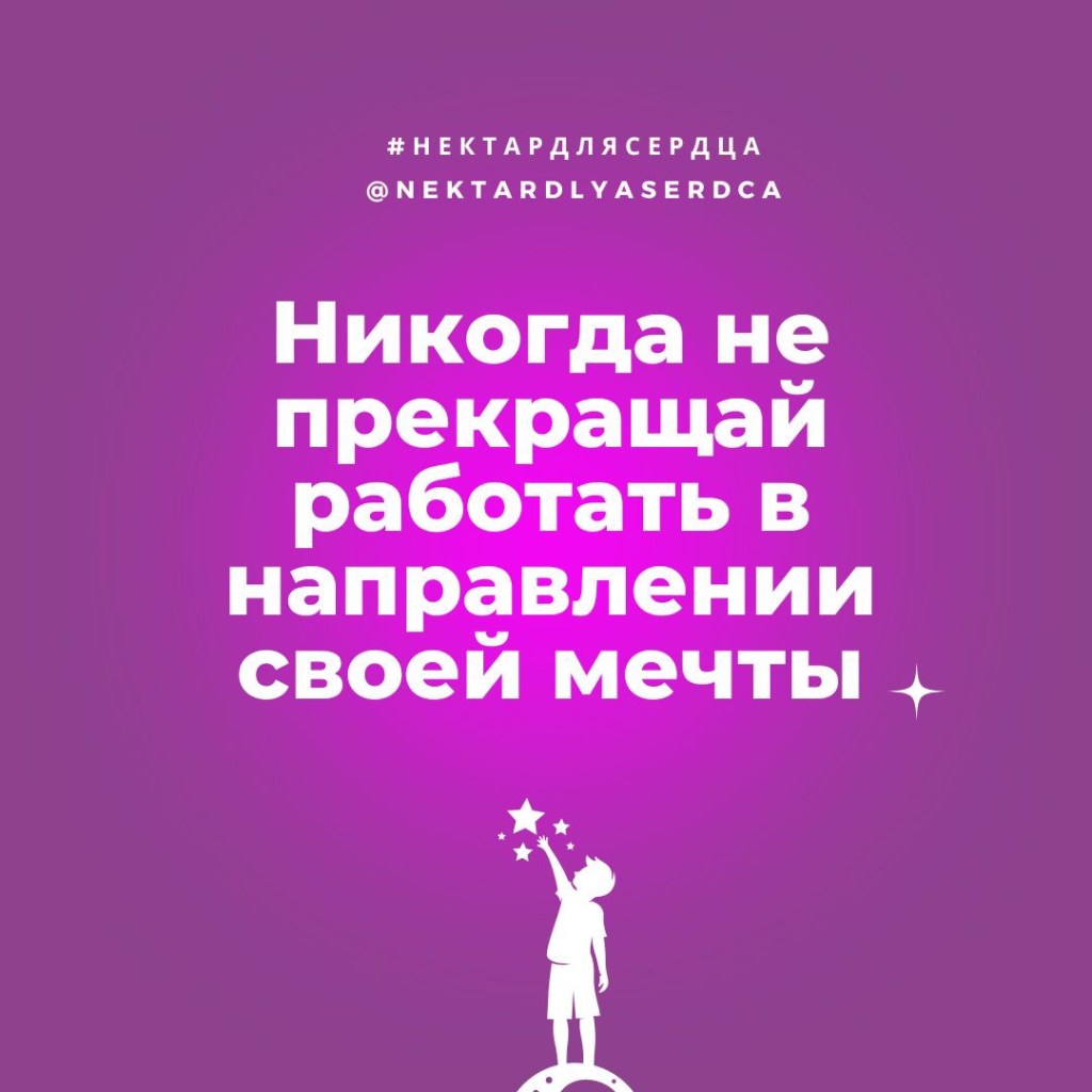 Никогда не прекращай работать в направлении своей мечты. И, в один день, твои самые смелые желания обязательно станут частью твоей новой удивительной чудесной реальности.