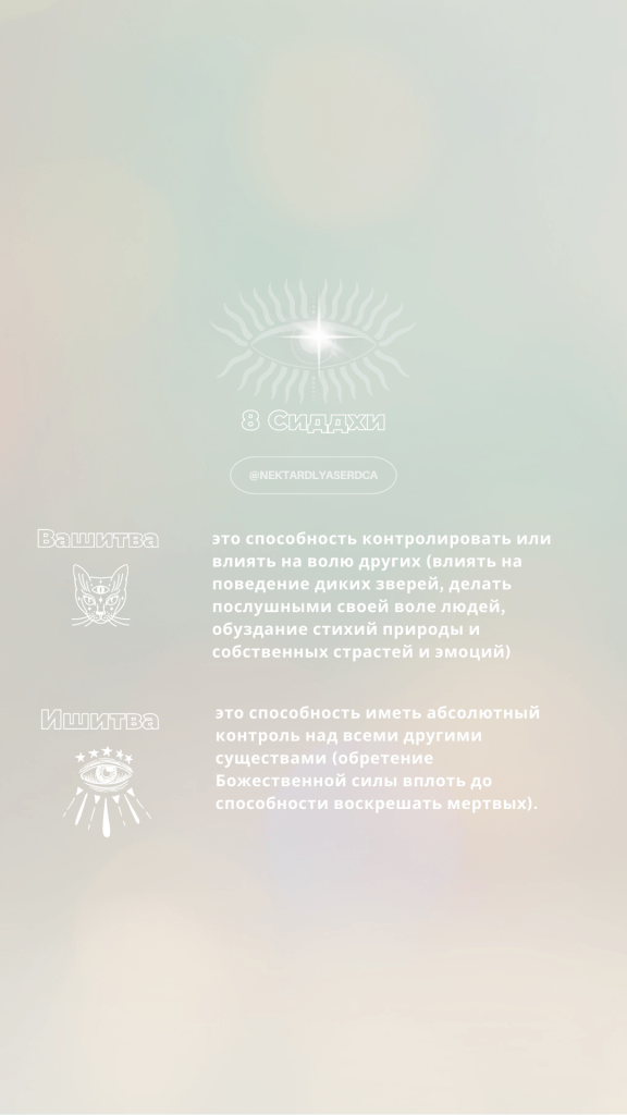 ✧ Ишитва — это способность иметь абсолютный контроль над всеми другими существами (обретение Божественной силы вплоть до способности воскрешать мертвых).